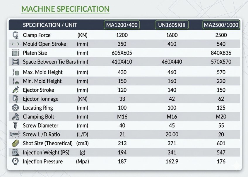 These machines allow us to produce a wide range of plastic components with different sizes, weights, and material requirements.